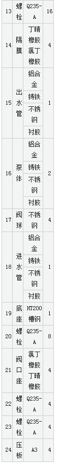 三、由于隔膜將被輸送介質和傳動機械件分開,所以介質 不會向外泄漏。且泵本身無軸封,使用壽命大大延長。根據不同介質,隔膜分為氯丁橡膠、氟橡膠、丁晴橡膠等,可以滿足不同用戶的要求。